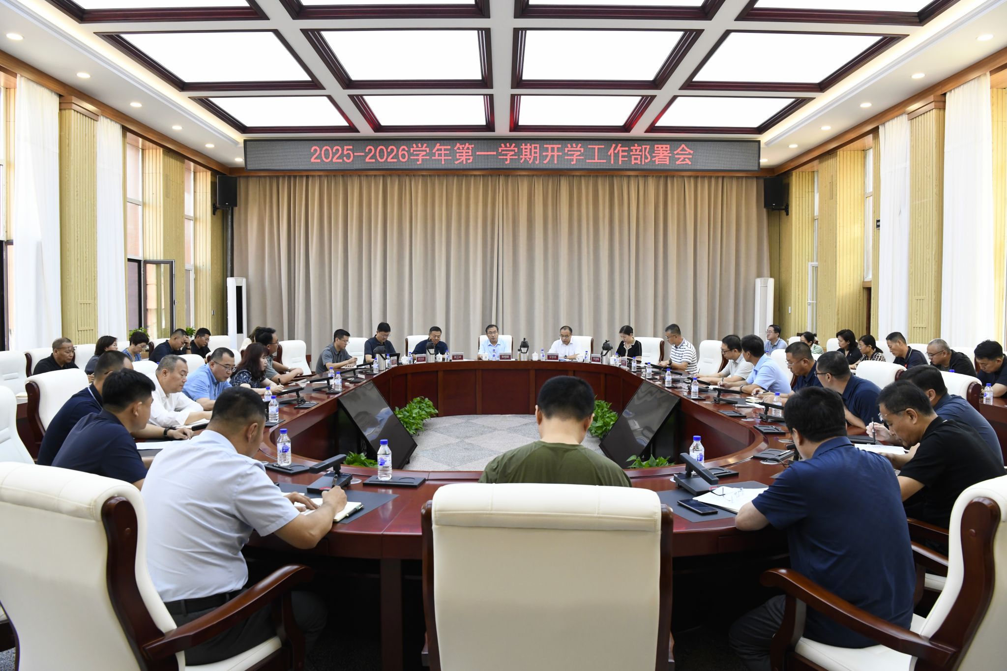 9月5日,学校在办公楼第三会议室召开2025-2026学年第一学期开学工作部署会。党委书记张明耀出席会议并讲话,校长艾学忠主持会议。